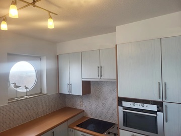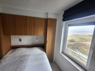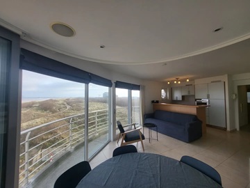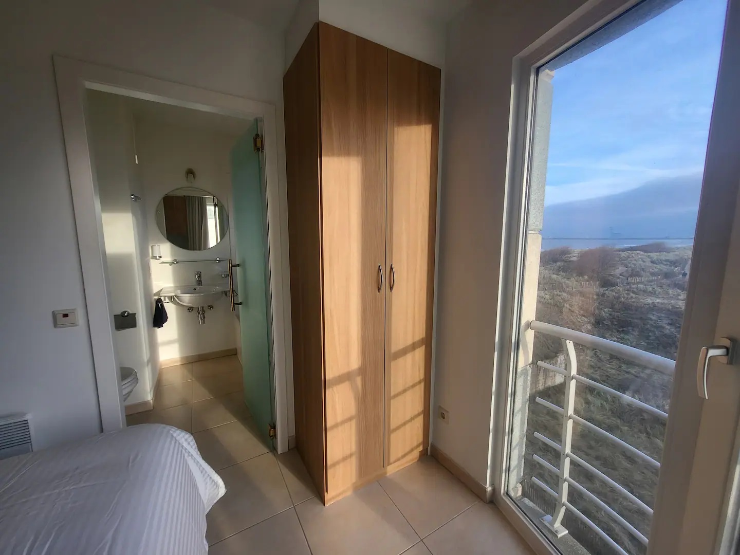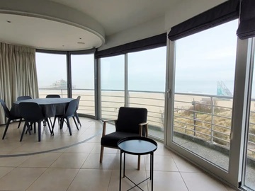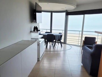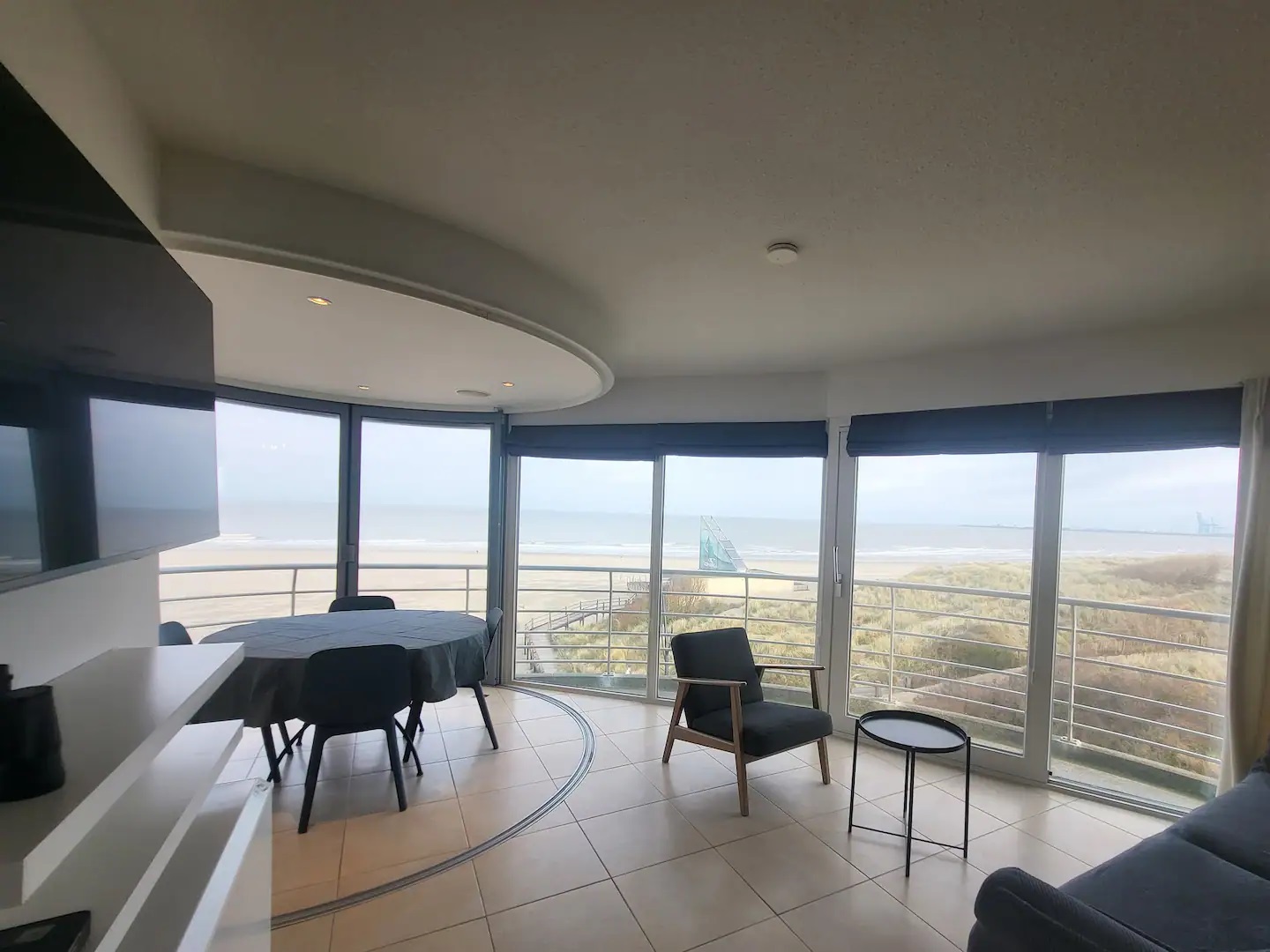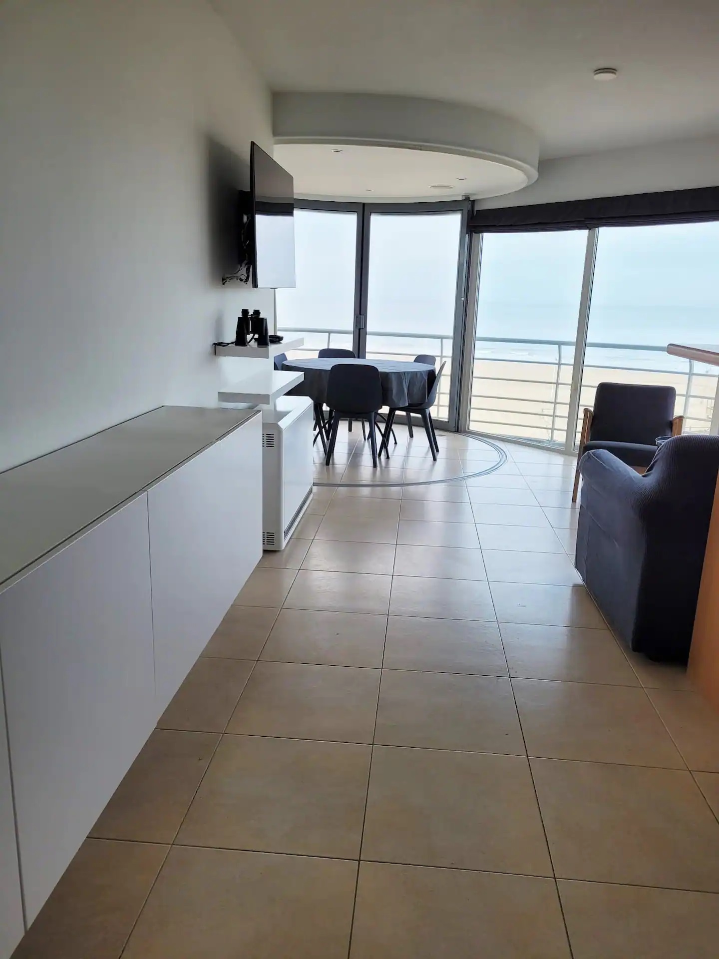 The living room has a stunning view over the beach and dunes of Blankenberge.The window can be opened in summertime to enjoy the weather while dining.The living room contains: A smart TV with several apps and a ChromeCast, radio (RF, DAB, Internet, Spotify, ...), triple sofa and arm chair, dinner table.