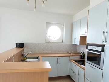 Fully equipped kitchen containing: Dishwasher, refrigerator, coffee machine, combi microwave oven, Induction cooking plate, pans, pots, knives, forks, spoons, ...